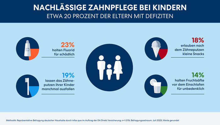 Diese Skepsis kann langfristige Folgen für die Zahngesundheit von Kindern haben. Zu diesen Ergebnissen kommt die Zahnpflege-Studie von DA Direkt und dentolo. Beide Versicherer gehören zur Zürich-Gruppe in Deutschland.