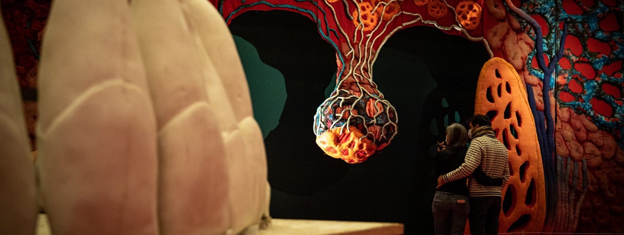 Mit Lippen, Zunge und Zähnen ist der Mund in Gänze eine äußerst reizvolle Körperzone: Sprache, Schmerz und Schrei, Essen, Schlingen, Speien und Spucken, Lust und Leidenschaft. Diese emotionale Bandbreite von Ekel bis Empathie erfahren die Besucher*innen des Kunstmuseum Wolfsburg auf dem abwechslungsreichen Themenparcours.