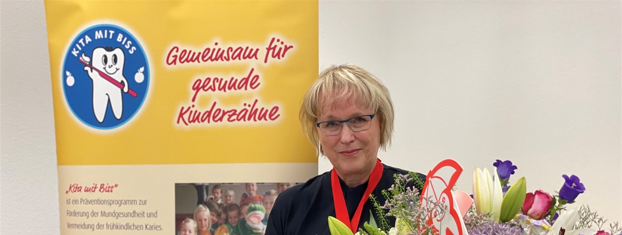 Dr. Gudrun Rojas mit der Friedrich-Römer-Ehrenmedaille der Aktion Zahnfreundlich 2021 ausgezeichnet