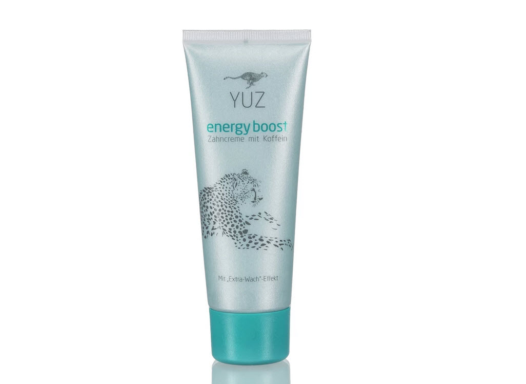 YUZ ist die persische Kurzbezeichnung für den Asiatischen Gepard, der sich durch Schnelligkeit, Eleganz und Effizienz auszeichnet - die perfekte Analogie zur sofortigen Energiewirkung der Premium-Produkte. Das Koffein in der Zahncreme entspricht bei 1 bis 1,5 ml pro zweiminütiger Anwendung der Wirkung einer Tasse Kaffee. Damit eignet sich die Zahncreme laut Hersteller für Morgenmuffel, die mehr zum Wachwerden brauchen, für Eilige, bei denen es auf jede Minute ankommt und für Kaffeeabstinenzler, die das Getränk nicht mögen.