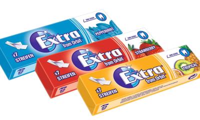 Damit gibt es ab Juli 2019 neben den Extra-Dragees und -Pastillen für die „Mundpflege To Go“ auch wieder einen weichen zuckerfreien Extra-Kaugummi im langen Streifenformat und in den Geschmacksrichtungen Peppermint, Strawberry und Tropical.
